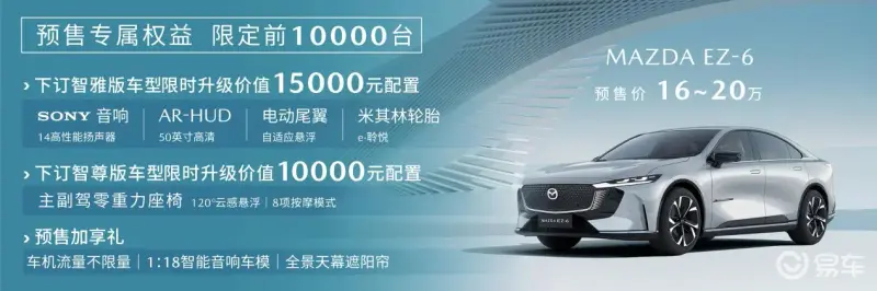 曾经有着运动属性的轿车马自达6现今进行了全面新能源化✿◈,以长安马自达MAZDA EZ-6之名正式开启预售✿◈,定位新能源中级轿车✿◈,预售价格16—20万元✿◈。以新能源动力系统和智能化作为面对新时代的卖点✿◈,同时将继承马自达应以为傲的操控特点✿◈。新车将会有纯电和无极增程双模式动力两种选择✿◈。
